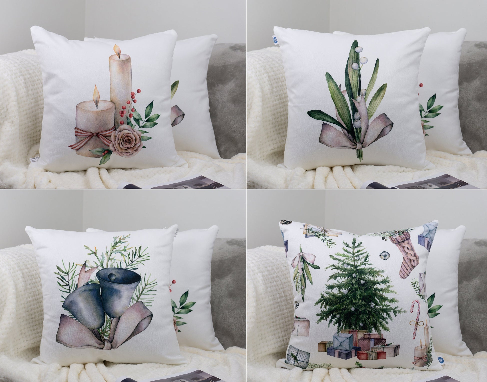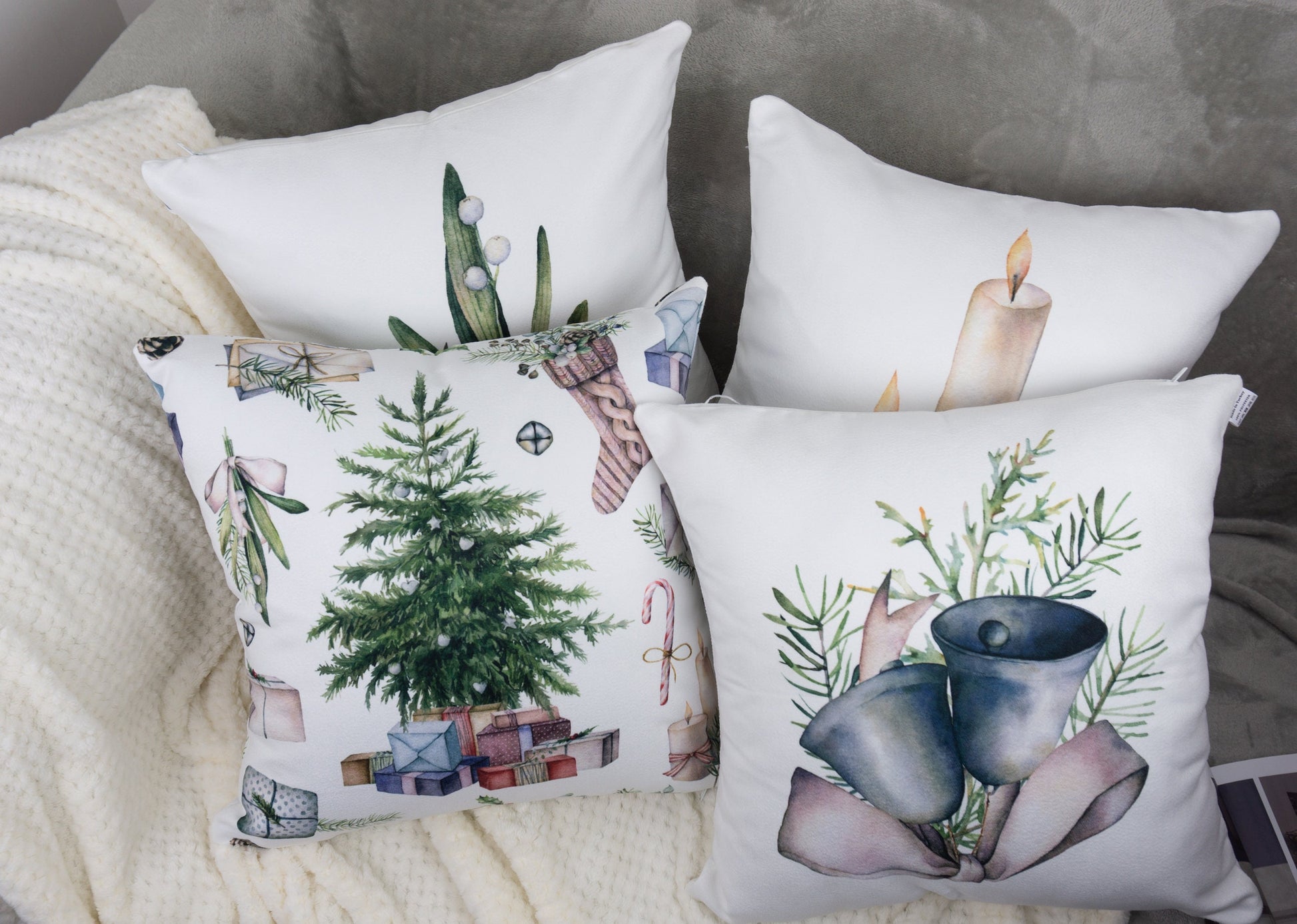 Christmas Decor Cushion Covers Double Sided , Set of 4 18x18inch