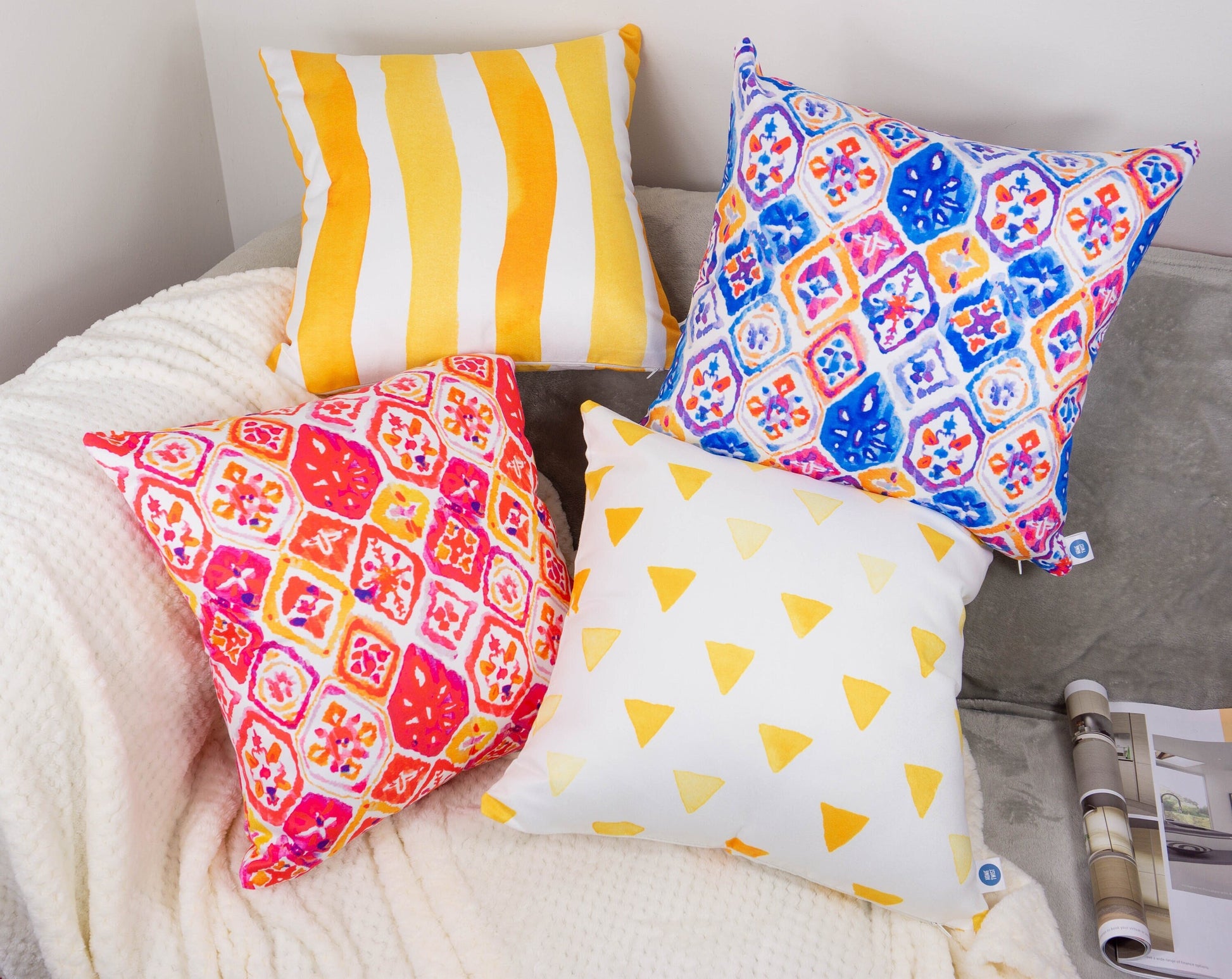 Multicoloured Decorative Cushion Covers, Double Sided 18x18 Inches, 45x45cm Square Cushion, Soft Velvet Fabric